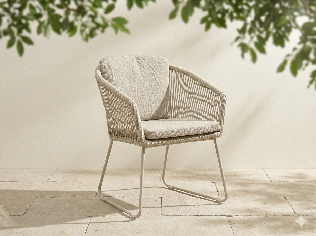 Zeo Living Sessel "Mailand" Edelstahl/Rope natur/beige