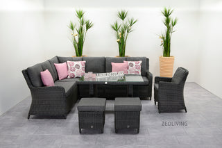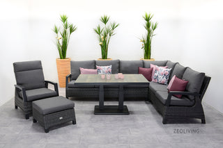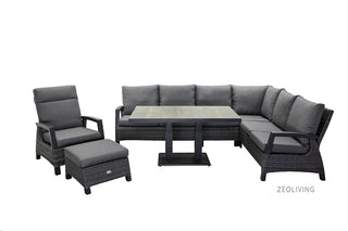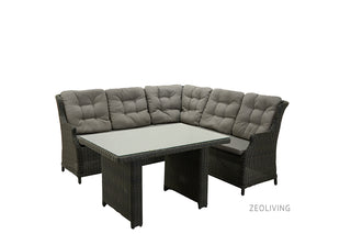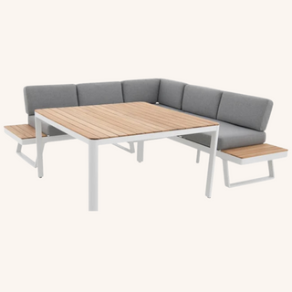 Dining-Loungen gibt es wie die üblichen Lounge-Sets auch als Modulare Loungen. Hier kann die Anzahl der Sitzplätze und die Größe der Lounge durch die entsprechenden Module frei gewählt werden.