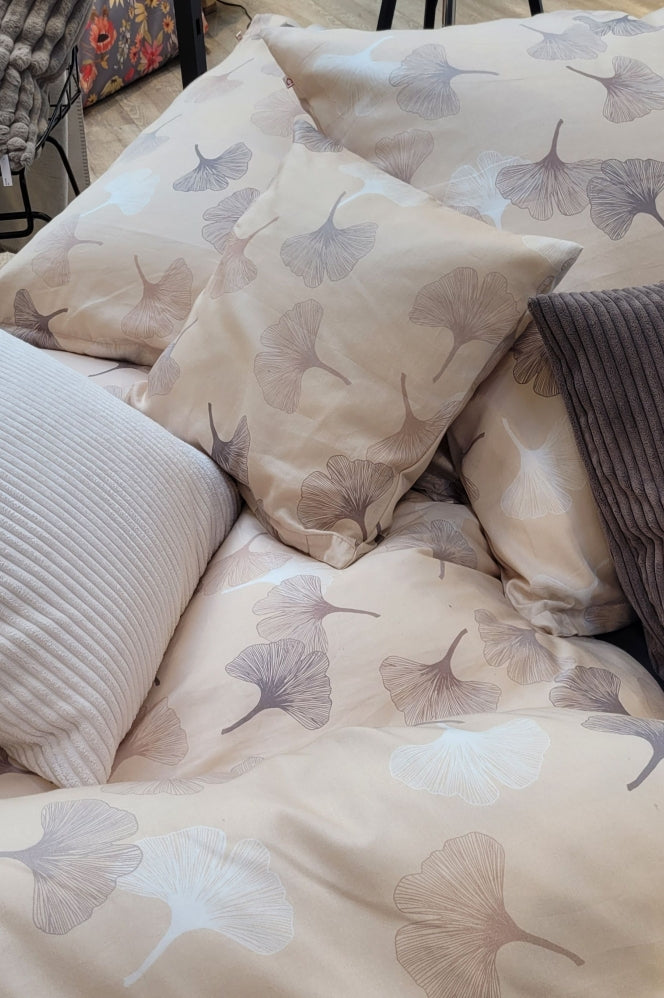 Living Dreams Satin-Bettwäsche Ginkoblatt Creme